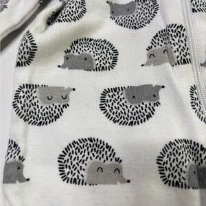 These cozy zip-up pajamas feature soft neutral designs including stripes, hedgehog print, and animal knee patches — perfect for everyday wear or gifting.