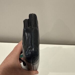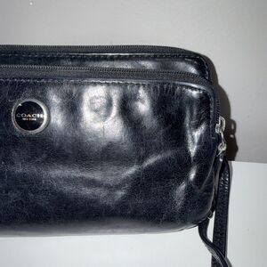Coach Wristlet Black Leather Wallet Double Zip Striped Legacy Satin Lining 8x4