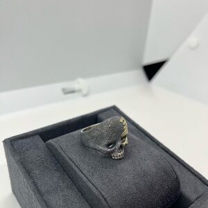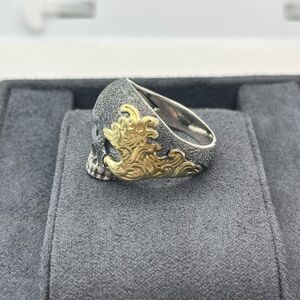 Elevate your style with the David Yurman Men's Skull Ring. Featuring a striking gray and gold design, this accessory adds a bold statement to any outfit.