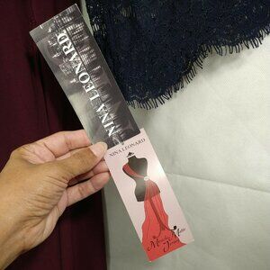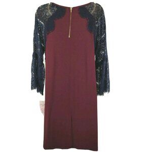 Nina Leonard Shift Dress Women Size M Wine Red Blue Lace Bell Sleeves Pocket NEW
