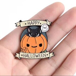 Happy Halloween Enamel Pin Custom Pumpkin Cat