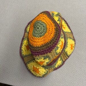 Peter Grimm Straw Bucket Hat Sun Flower Granny OS Beach Crochet Boho Hippie