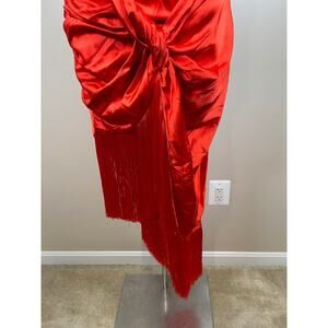 NWT For Love & Lemons Red Anisa Silk Fringe Draped Midi Dress Size Large is brand new with tags!
