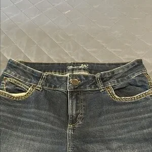 Stylish dark blue flare jeans by Wrangler. Perfect for casual wear.