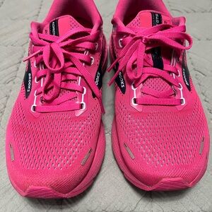 Vibrant fuchsia sneakers by Brooks. Designed for comfort and performance. Ideal for running and daily wear.
