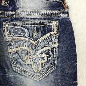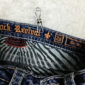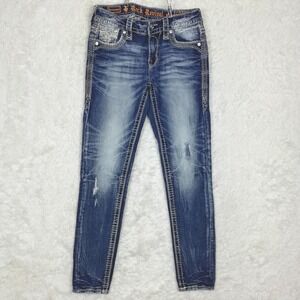 Rock Revival Womens Jeans Rosewood Skinny Blue Denim Distressed Jeweled Stone 26