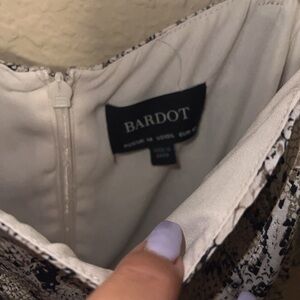 Chic Bardot dress with snake print. Features a sleek design. Perfect for any occasion. Size large/10. Beautiful piece