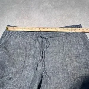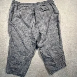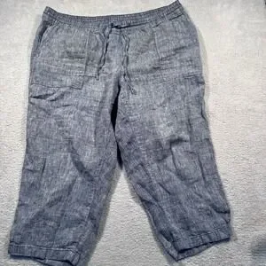 Lands' End Linen Capri Pants Women's 20W Blue Gray Elastic Waist Drawstring