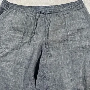 Keywords: Lands' End, linen capri pants, women's capri pants, plus size pants, elastic waist pants, drawstring pants, cropped pants, summer pants, casual pants, blue gray pants, size 20W, linen pants, comfortable pants, beach pants