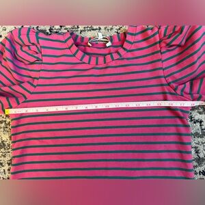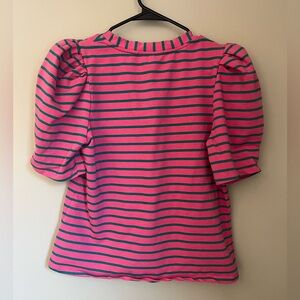 ENGLISH FACTORY stripe puff sleeve top in pink/green