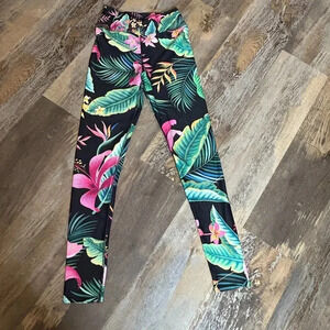 Etrenspire Black Hawaiian Floral Leggings Small