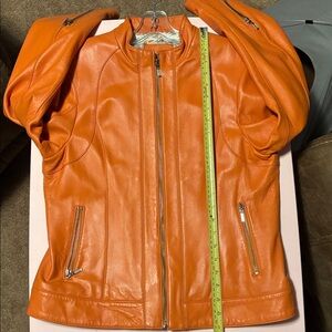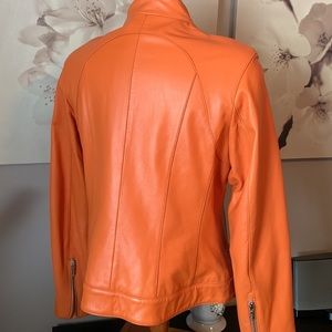 Leather jacket beautifully lined zipper detail on sleeve