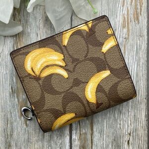 COACH Snap Wallet In Signature Canvas With Banana Print Bag Purse