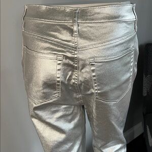 LOFT NWOT Coated High Rise Straight Jeans in Silver Metallic