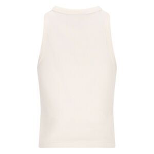 : white ribbed knit round neck logo appliqué sleeveless