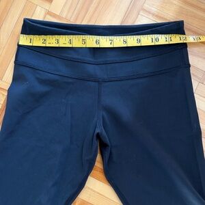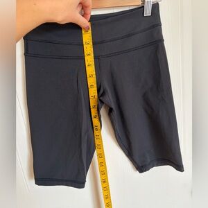 Black lululemon biker shorts with a low-rise fit and longer inseam. Great for workouts or everyday wear.