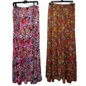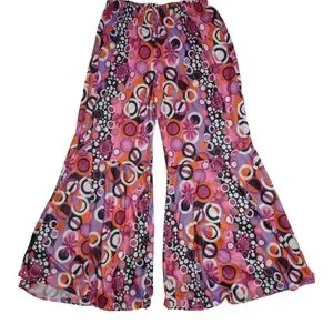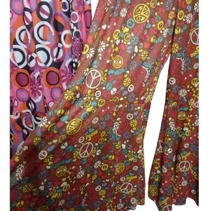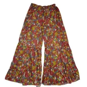 2 Pair Bell Bottom Hippie Pants Women's Floral And Peach Sign Flare Pants