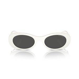 Miu Miu Sunglasses Oval Full Rim, White Ivory Frame and Dark Grey Lens