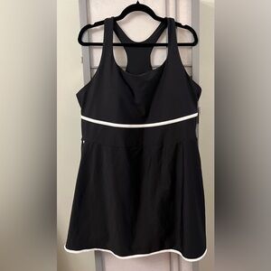 NWT OLD NAVY 2x Women's BLACK PowerSoft Athletic Dress White Trim Racerback