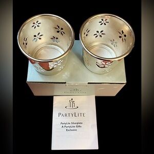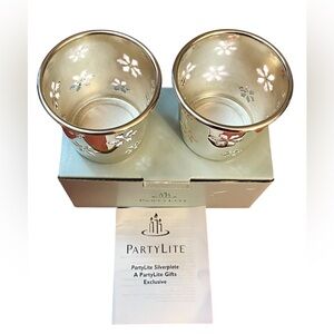 Vintage PartyLite Silver Plate Snowflake Design Votive Holders New Original Box