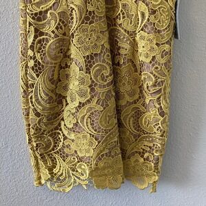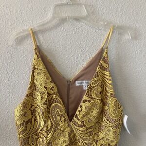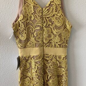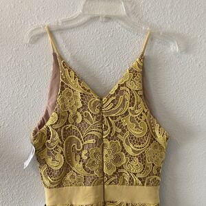 NWT Dress the Population Canary Tan Ava Lace Mini Dress V-Neck Women's Small