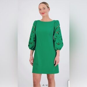 Step out in style with this elegant green dress featuring chic balloon sleeves. Perfect for any occasion.