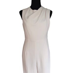 banana republic factory ivory “snow day” sleeveless cowl neck wide leg jumpsuit. minimalist, polished, and easy to dress up or down. soft drape with a tailored feel. waist seam with darts for shape, off-seam front pockets, invisible back zipper with hook + eye, subtle trouser crease, and fully lined. great for work, events, showers, or modern bridal looks.
