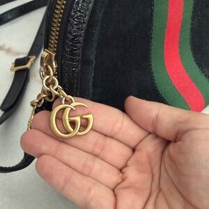 Gucci Black Suede Crossbody Bag with Green and Red Stripe