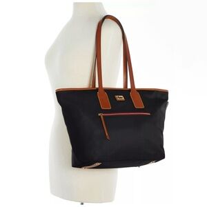Dooney & Bourke Wayfarer Zip Tote & Coin Pouch in Black Nylon with Leather Trim