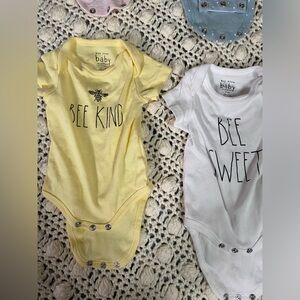 - 2 onesies are Rae Dunn baby brand sized 0-3 months
