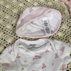 - 2 onesie are Little Me brand sized 3 months + (1) matching cap