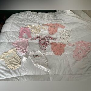 20pc LOT Baby Girl 0-3 months assorted brands long/short sleeve onesie pants hat