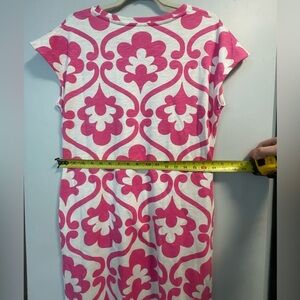 Boden, US women’s 6, pink and white patterned with pockets mini tshirt dress EUC