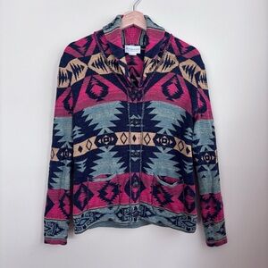 Vintage 90s Denim & Supply Southwestern Aztec collared Sweater made by Ralph Lauren. Made from 100% cotton. Washed and laid flat to dry as per directions. Pit to pit is approximately 18 inches and length is 23.5 inches. Does have stretch to it. Pet friendly and smoke free home.