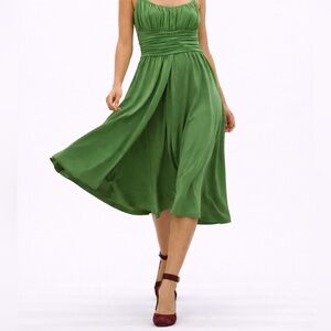 Jones NY Green Jersey Knit Draped Strappy Midi Dress for Evening Formal & Gala