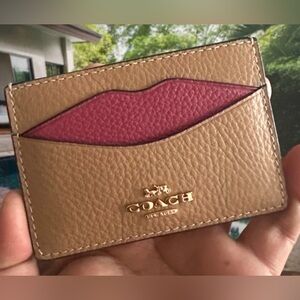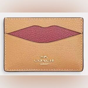 NWT COACH Lip Card Case in Refine Pebbled Leather Latte Multi