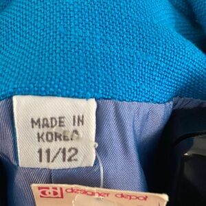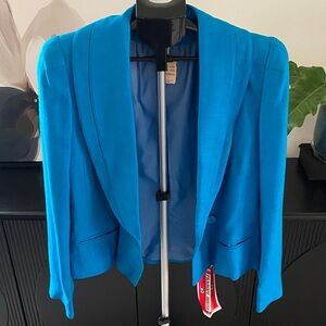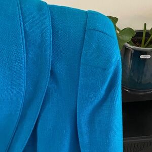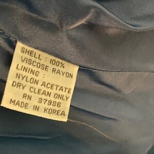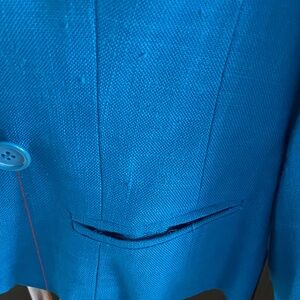 This very stylish blue blazer is perfect for any occasion. Its vibrant color adds a pop of style to your wardrobe. Excellent tailoring and 100% Rayon and fully lined.