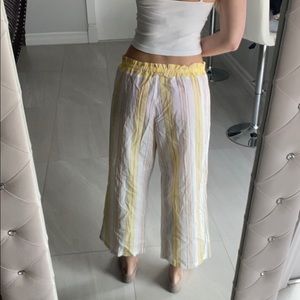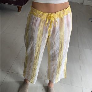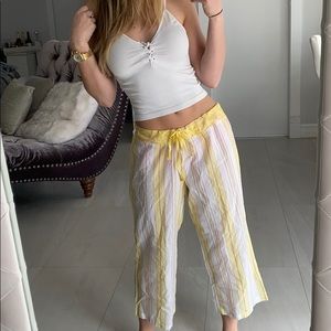 Stylish pajama pants with yellow-stripes. Comfortable and chic design.