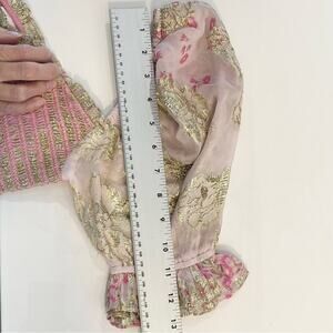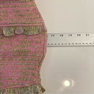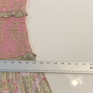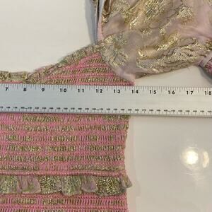 nwot HEMANT NANDITA Dress S Pink Floral Lyrics Tiered Smocked Puff-½-Sleeve Mini