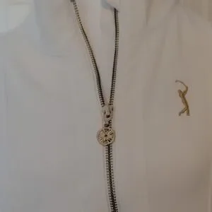 Chic white golf jacket by Lilly Pulitzer. Features a sleek zip-up design. Ideal for stylish outings.