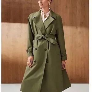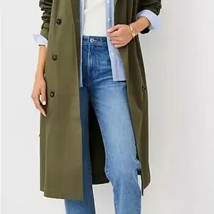 Stylish khaki trench coat by Ann Taylor. Timeless design with a sleek silhouette. Ideal for versatile wear. Proof of belt pic is in too warm of lighting, the real color is in the first pictures. Only worn once.