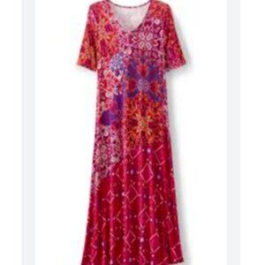 Soft Surroundings Mixed Media Stretch Jersey Maxi Dress Flowy Large Petite