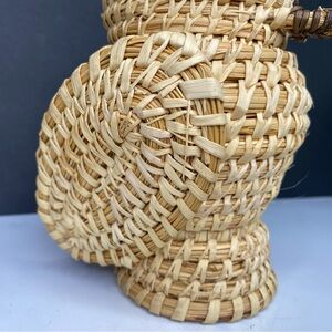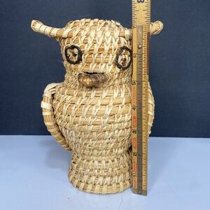 Vintage Tribal Native American Indian Figural Owl Hand Woven Basket 7.5”