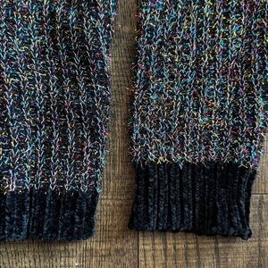 Gorgeous black sweater with multicolor metallic threads that shimmer beautifully in the light! Soft, comfy, and perfect for adding a little sparkle to any outfit. Super soft Ribbed neckline and cuffs for a cozy fit.