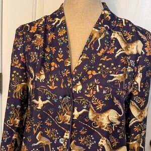 Collection Drake’s London for J.Crew women’s size 6 pajama top midnight unicorn silk blue multicolor