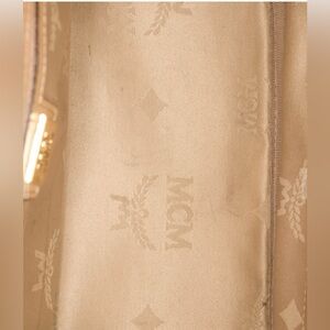 MCM Beige Visetos Silver and Gold Pyramid Studded Backpack