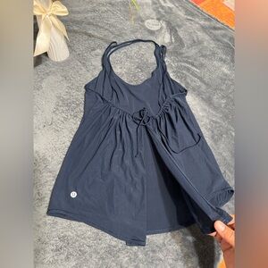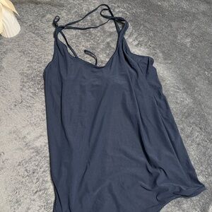 Comfortable navy blue sleepwear. Features adjustable straps and a relaxed fit. Perfect for lounging.