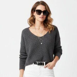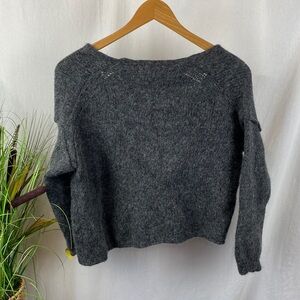 Free People Gray Cropped Long Sleeve Alpaca Wool Sweater M