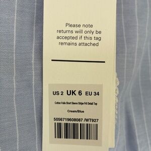 ME+EM NWT Cotton Voile Short Sleeve Striped Frill Detail Top