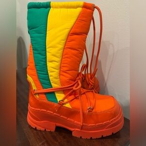 Sold out everywhere!!!! Bright orange and yellow green winter boots with lace-up design. Perfect for adding a pop of color to your winter wardrobe. Retro Vintage vibe with function of 2025!!!!